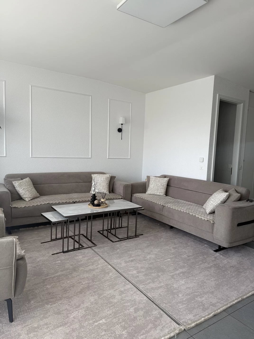 4.5-room duplex apartment on 2nd floor comprising living room, open-plan kitchen, three bedrooms, shower room adjoining master bedroom, bathroom, separate toilet and balcony.