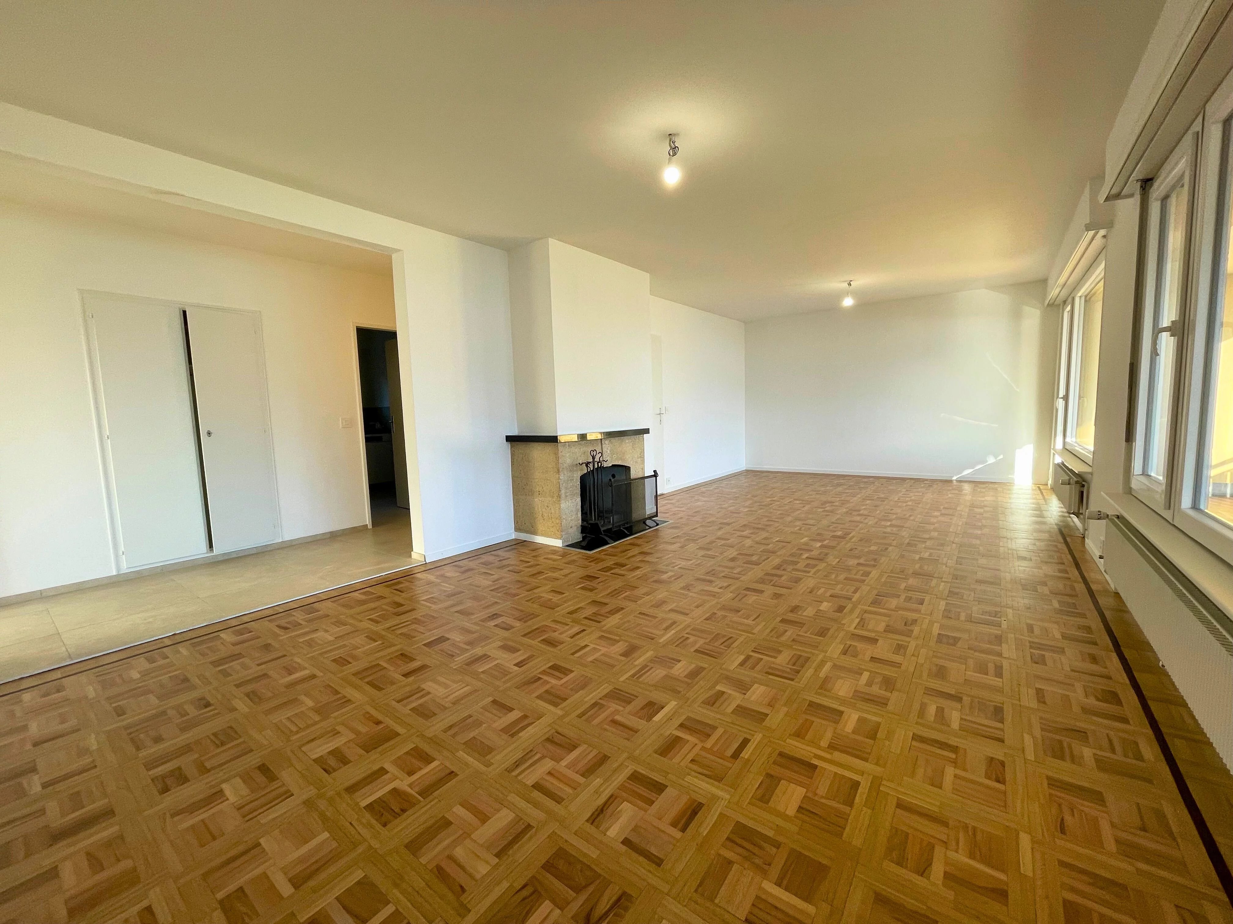 5.5-room apartment on 2nd floor, comprising: entrance hall, separate fitted kitchen, living room with fireplace, shower/bath/WC, separate WC, 4 bedrooms, balcony.