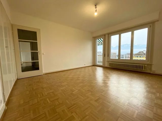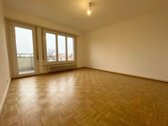 2-room apartment on 3rd floor comprising: 1 unfinished eat-in kitchen, 1 living room with parquet floor and built-in wardrobes, 1 bedroom with parquet floor, 1 hall, 1 bathroom/wc, 1 south-west-facing balcony accessible from all rooms, with a nice view of the Alps, 1 cellar.