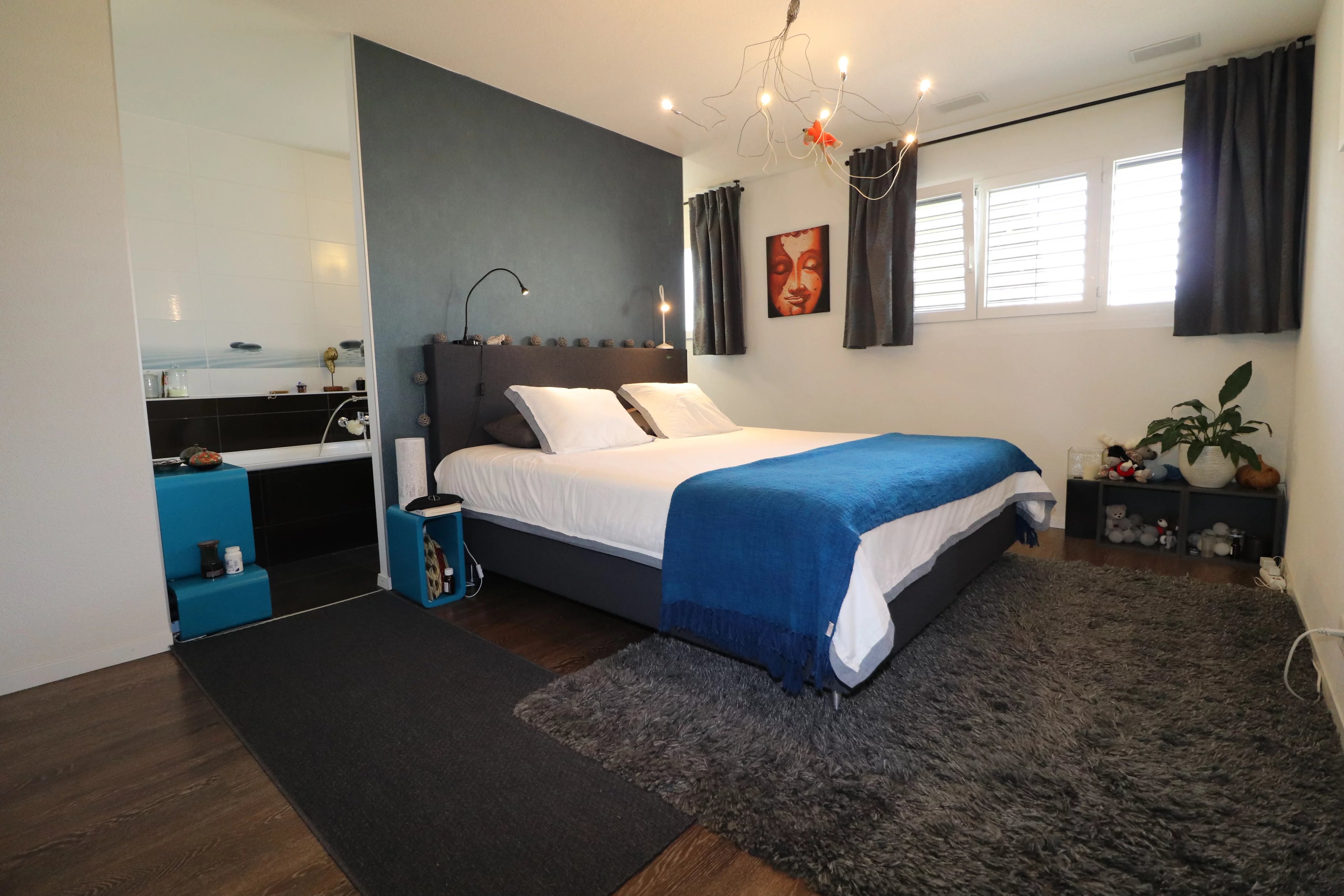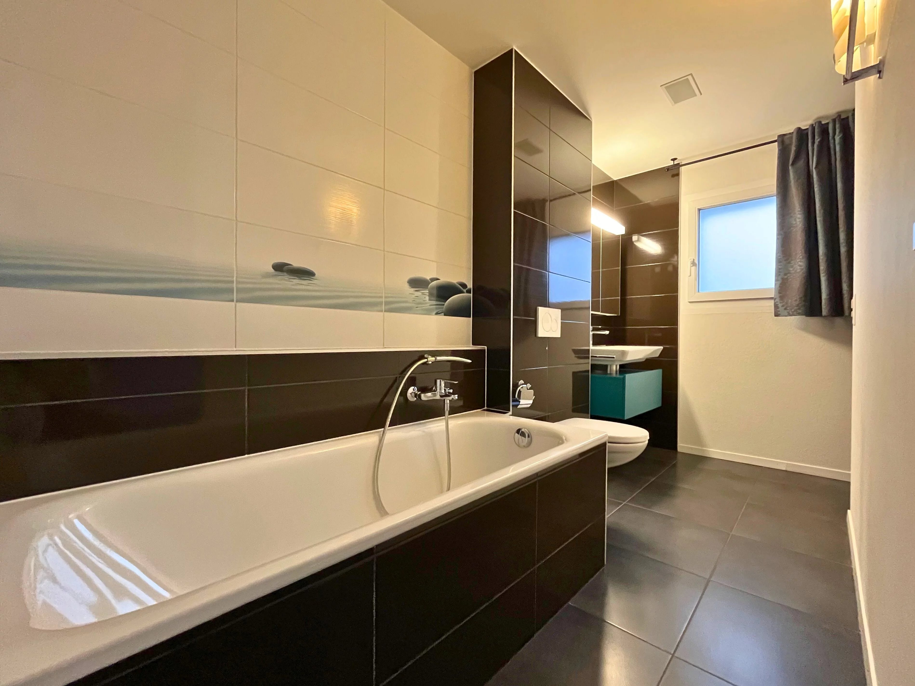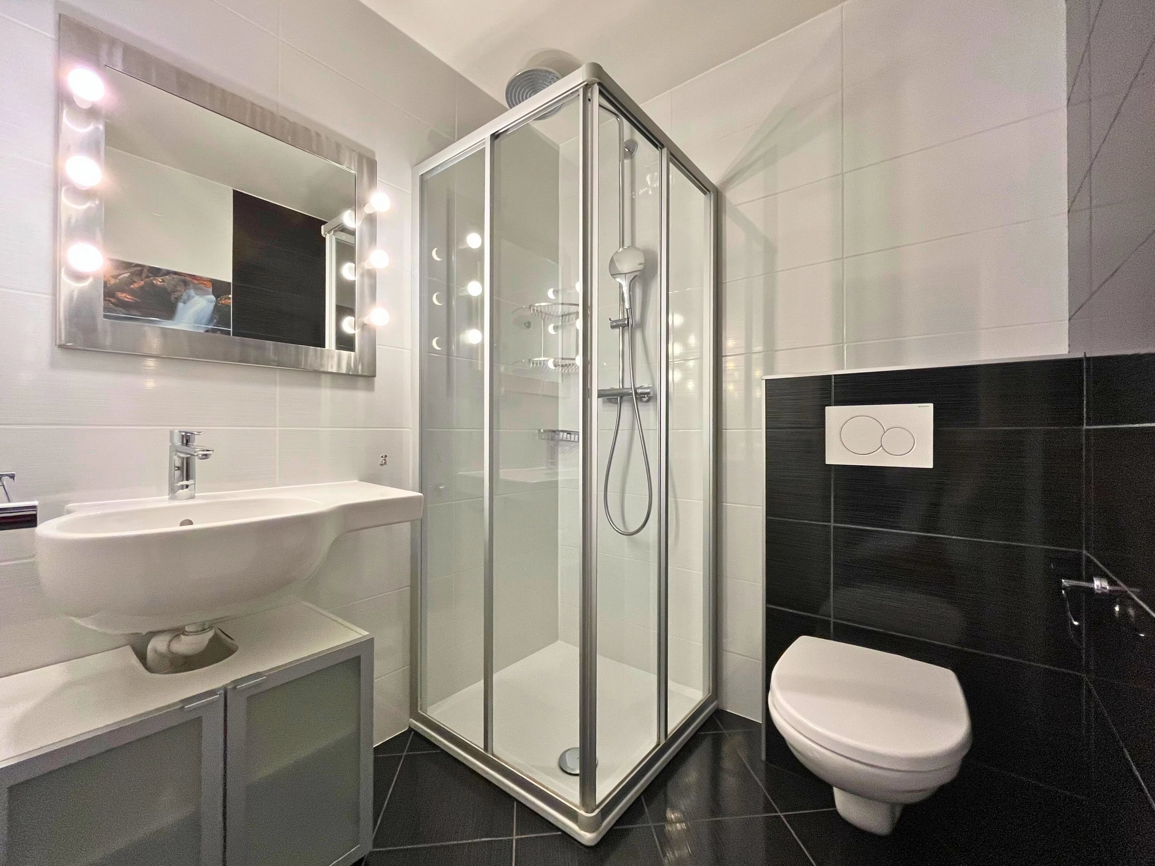 - A bathroom with shower.