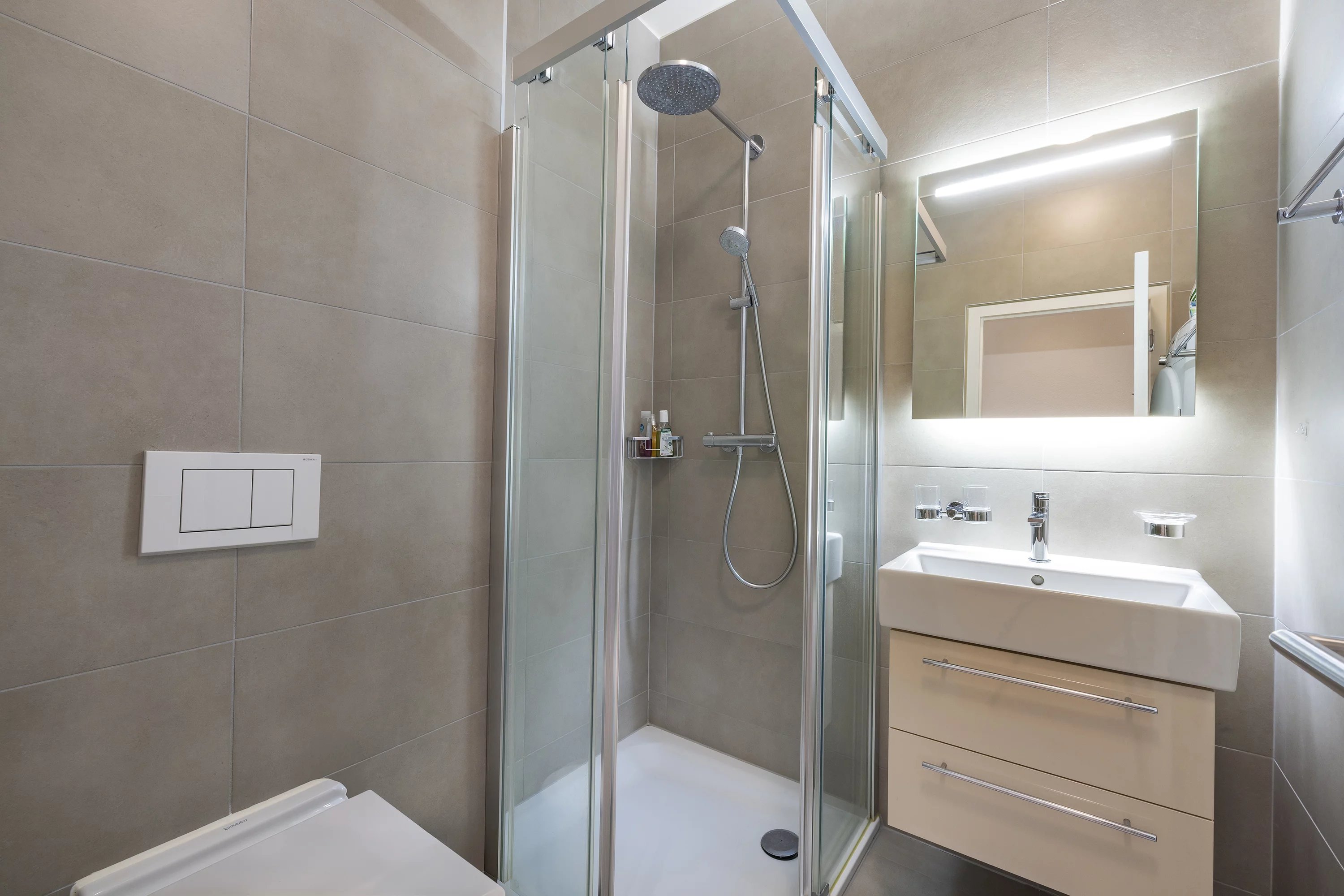 L’appartement se compose de deux chambres à coucher et de deux salles de bains/w.c. Une généreuse terrasse privative offre un espace extérieur idéal pour se détendre.