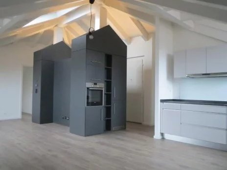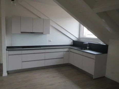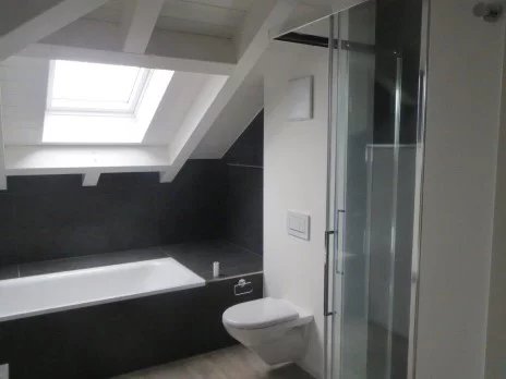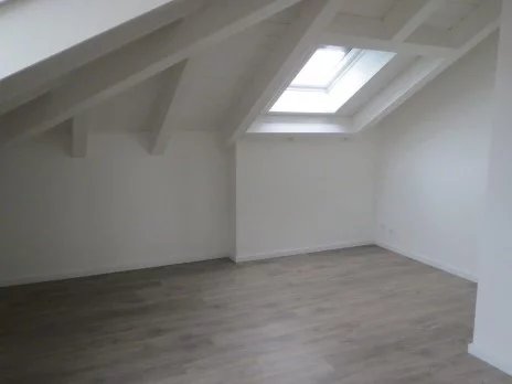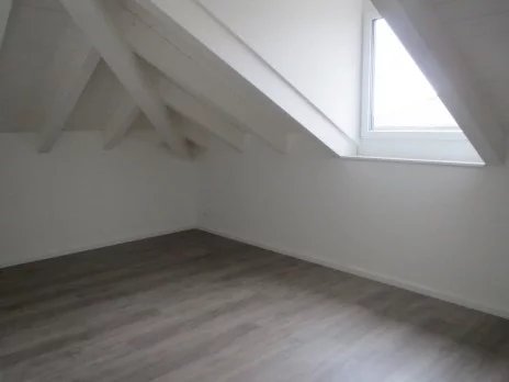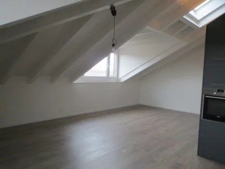 Magnifique appartement de 3.5 pièces dans les combles, de bon standing, créé à neuf en 2017, comprenant : hall, séjour, deux chambres d'env. 15m2, cuisine entièrement agencée avec plan de travail en granit, une salle d'eau avec douche, baignoire et emplacement pour machine à laver/sécher le linge, stores électriques, nombreuses armoires. Appartement mansardé avec beaucoup de cachet. Les sols seront entièrement refaits. Possibilité de louer une place de parc extérieure en sus.
