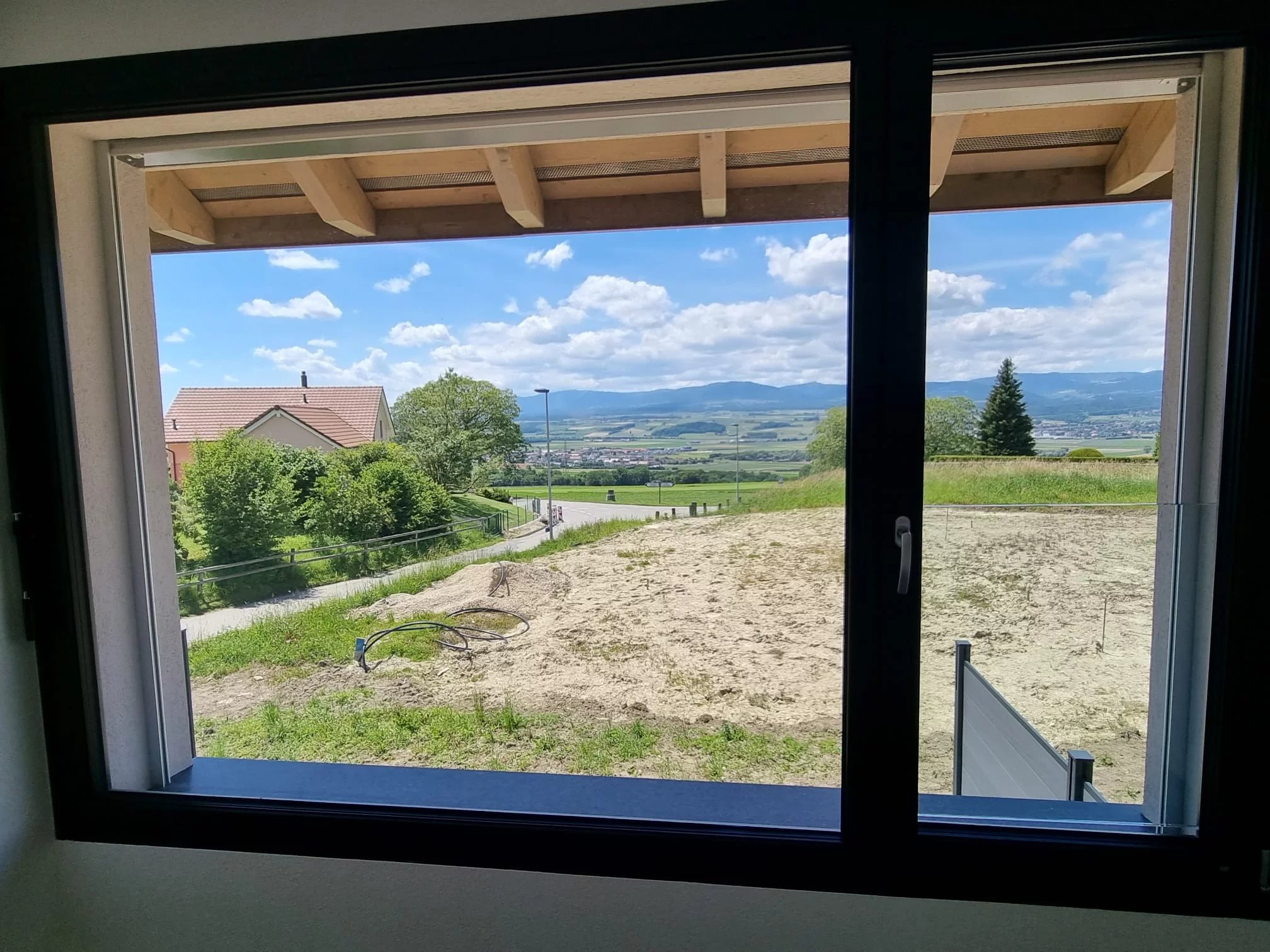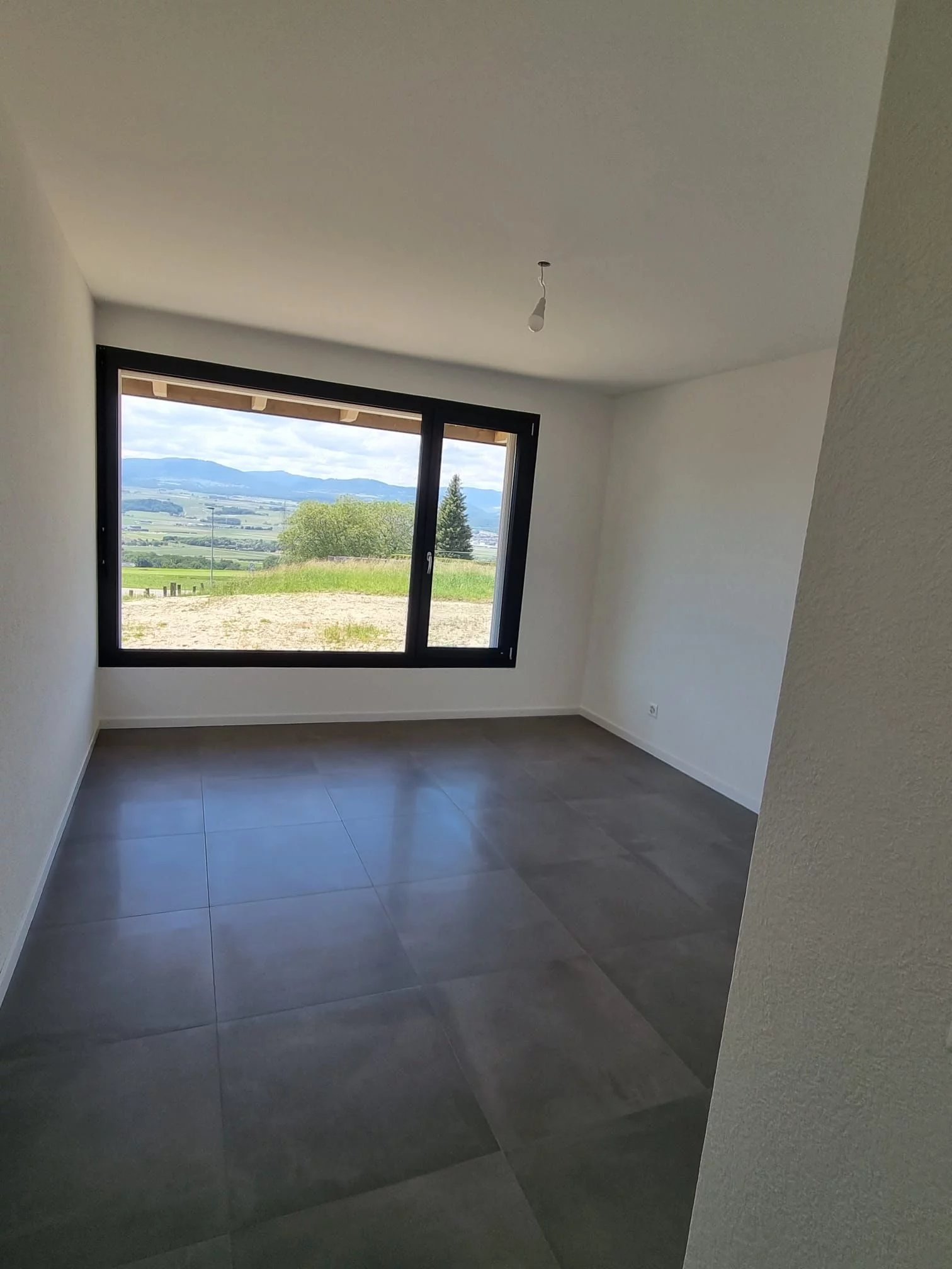 Dans un petit village du district du Jura-Nord vaudois, dominant la plaine de l'Orbe. Construction récente.