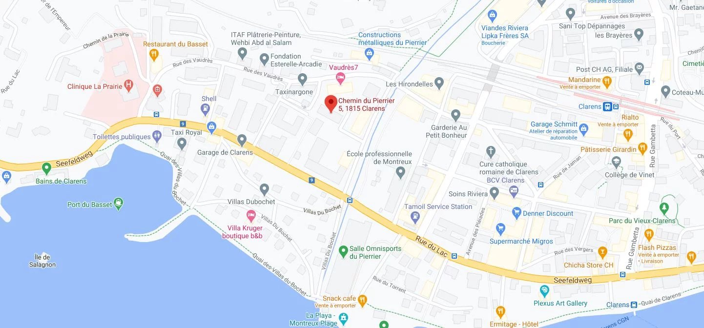 Dans un parking sous-terrain situé à proximité de la gare de Clarens, des commerces et des transports publics.