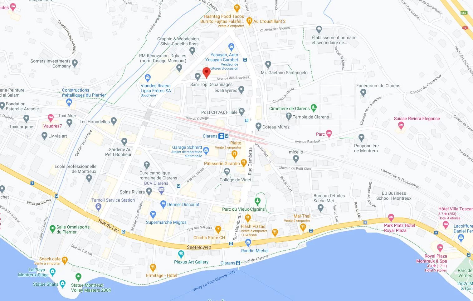 Dans un parking situé à proximité de la gare de Clarens, des commerces et des transports publics.